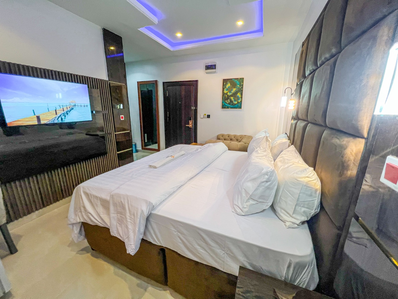 Offering a choice of National and international cuisine, Royal De Elite Hotel, a renowned 3-star hotel in Port Harcourt, features an outdoor pool with stunning views. Professional trainers and masseurs pamper guests at the health club, ensuring a truly luxurious experience. Royal De Elite Hotel elegantly designed rooms combine 43” flat-screen TVs and high-speed internet with sophisticated furniture, black-and-white photography, and a warm, homely feel. The bathroom includes a bathtub, plush bathrobes, and slippers for added comfort. Guests can enjoy business lunches and 3-course dinner buffets at the Restaurant, while the extensive breakfast spread is served. A 24-hour room service enhances the convenience of every stay. Strategically located, Royal De Elite Hotel is just a 2-minute walk from the Unversity of Port Harcourt and a short drive from Port Harcourt International Airport. It takes only 20-25 minutes to access the entertainment & shopping hub , ensuring easy access to main districts. Port Harcourt is an ideal destination for travellers interested in business, shopping, family-friendly trips, and entertainment. For those seeking an elegant and sophisticated stay, our Luxury Hotel offers world-class amenities and unparalleled service, making it the perfect choice for both leisure and business travelers. The hotel is also conveniently close to key business hubs and leisure spots such as Park Land, Pleasure Park, Oak Park and Garden, Obi Wali International Conference Center etc. As a well-connected 3-star hotel, Royal De Elite Hotel ensures a seamless travel experience with easy access to the city's prime locations.